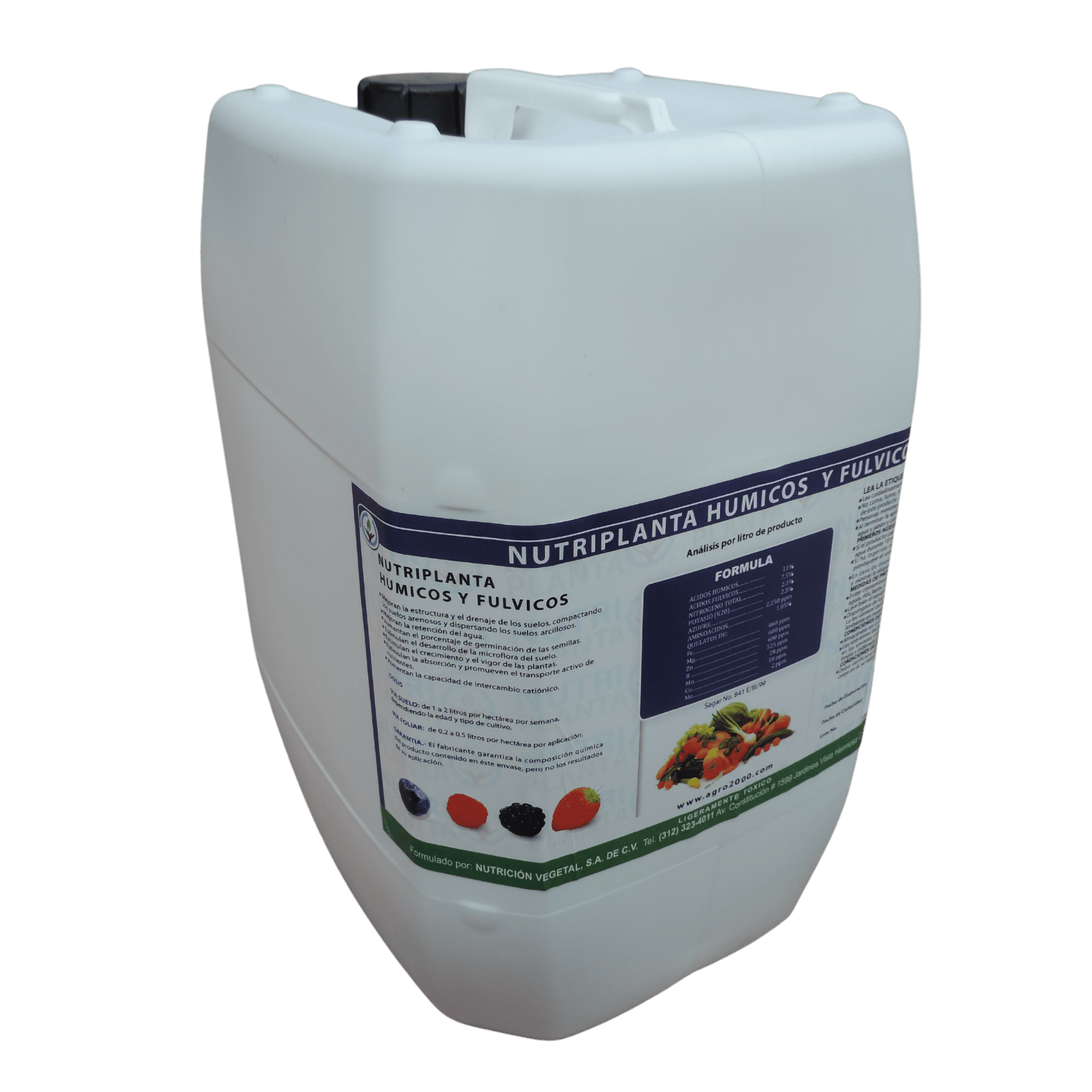 Extractos de Leonardita de la más alta calidad importados de Estados Unidos de Norteamérica. La mejor opción, probada, para mejorar las propiedades físicas, químicas y biológicas del suelo (1 kg de Ac. Húmicos = 5 toneladas de M.O.). Son una combinación balanceada de humatos de potasio extraídos de leonardita, 100% orgánicos y ácido fúlvico 100% de origen vegetal, enriquecidos con microelementos. NUTRIPLANTA HUMICOS Y FULVICOS mejoran la estructura y el drenaje de los suelos, agregando los suelos arenosos y dispersando los suelos arcillosos. De igual forma aumentan la capacidad de retención de agua, la capacidad de intercambio catiónico y el porcentaje de germinación de las semillas. Estimulan el desarrollo de la microflora del suelo, la absorción y transporte activo de nutrientes y el crecimiento y vigor de las plantas. NUTRIPLANTA HUMICOS Y FULVICOS son completamente solubles en agua.