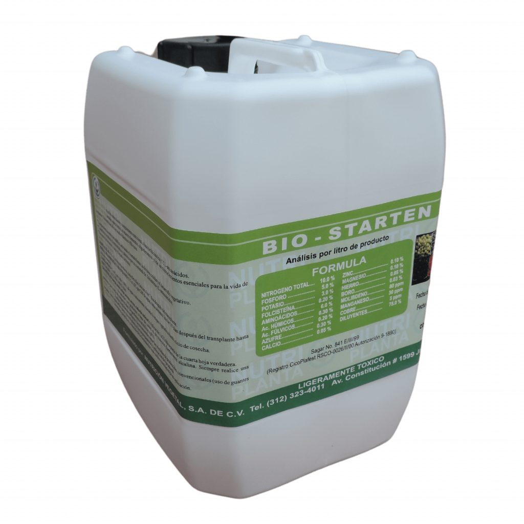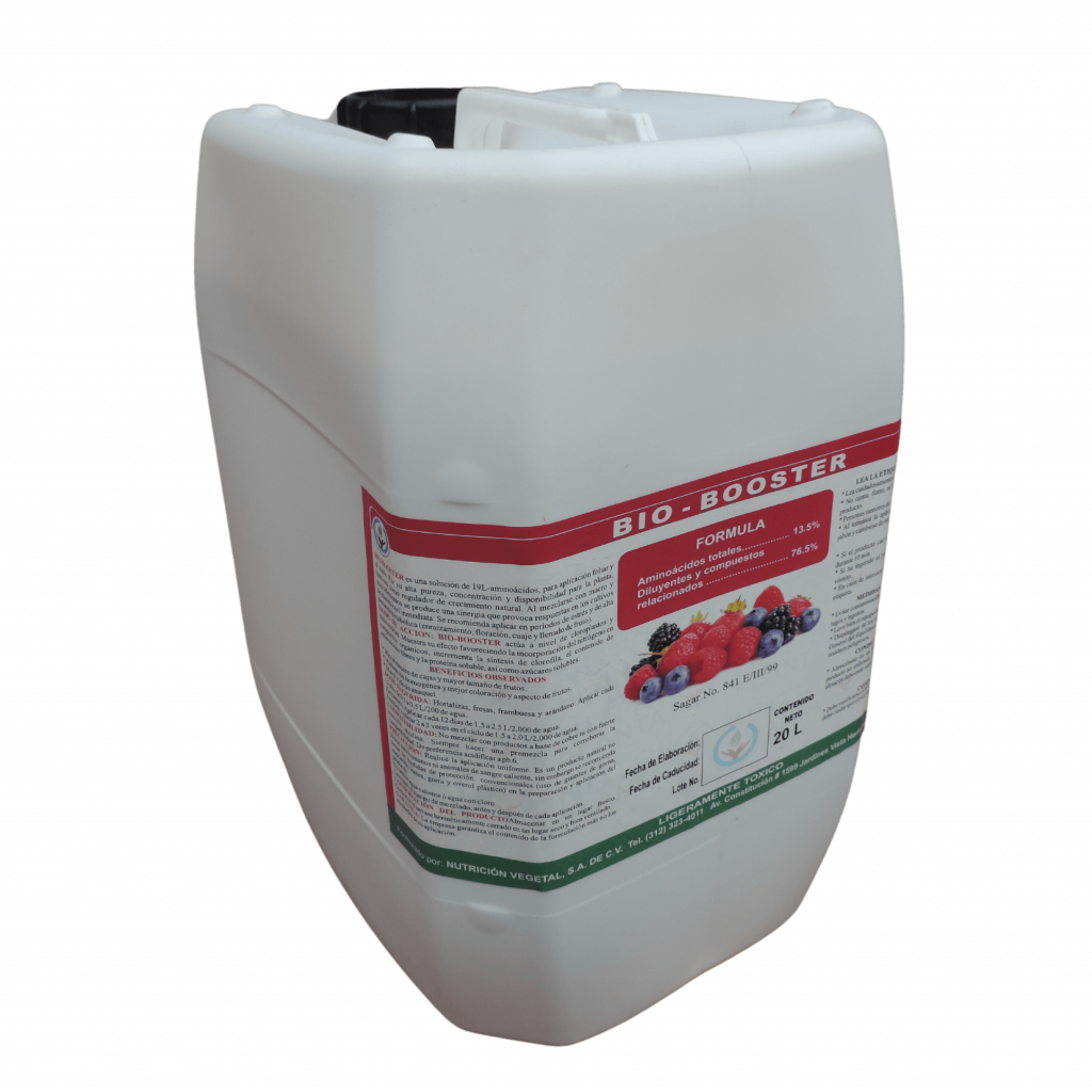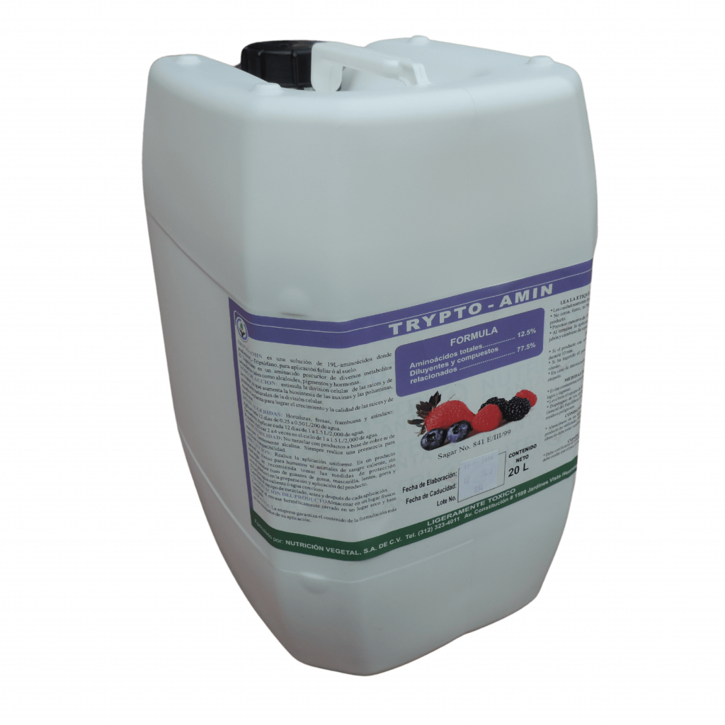 (L-Triptofano + L-Ac. Glutámico + GABA + 8% L-Aminoácidos + B + Mo) Bioestimulante promotor de la división celular de las raíces y de los frutos ya que aumenta la…